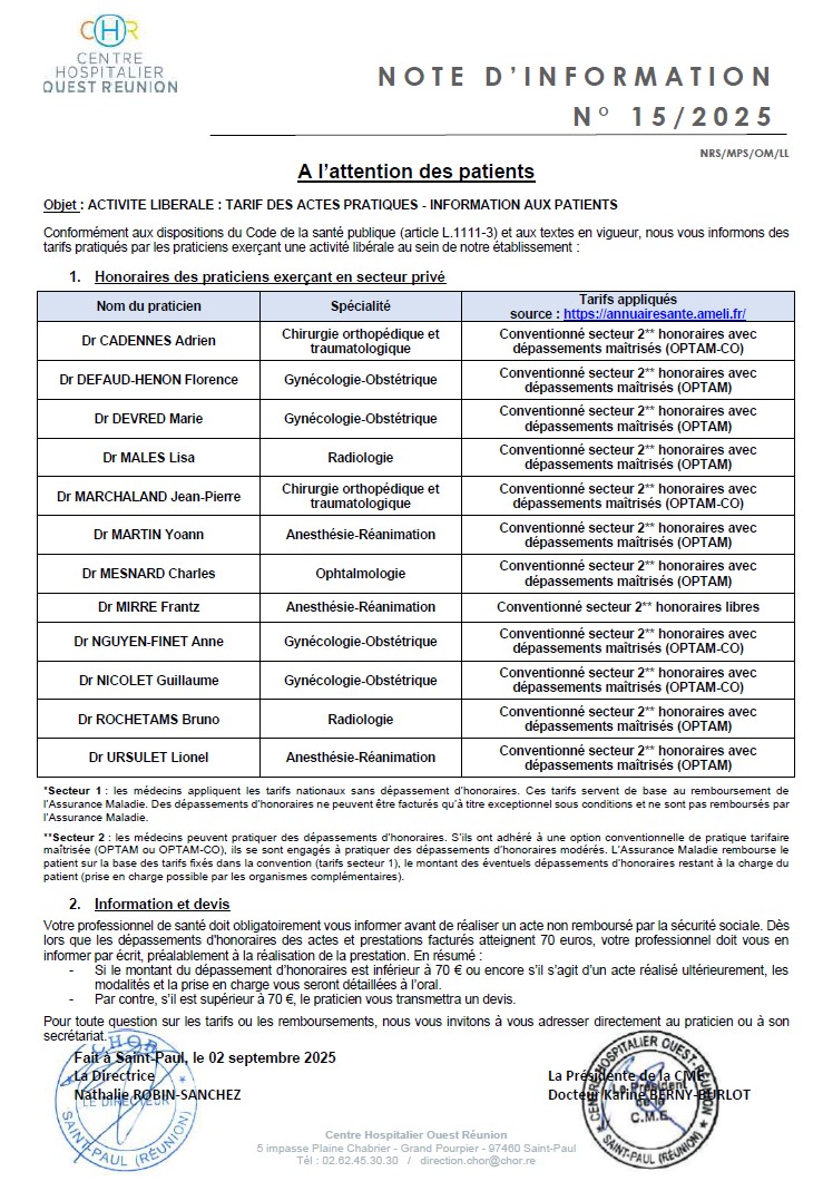 - Jeanine Payet : Services de Médecine et de Chirurgie - Patients de 18 à 69 ans.